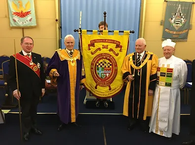 This was the first such banner dedication conducted by the Grand Summus – not that you could tell – and the event was topped off with a splendid oration from Grand Episcopus, V.Dist.Comp. Eric Bourne (pictured in the unique regalia of the Order).